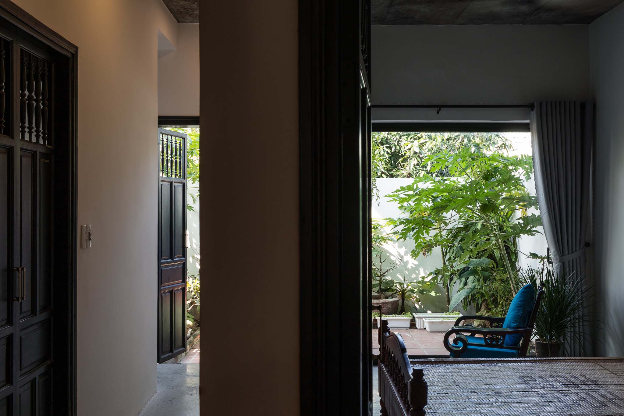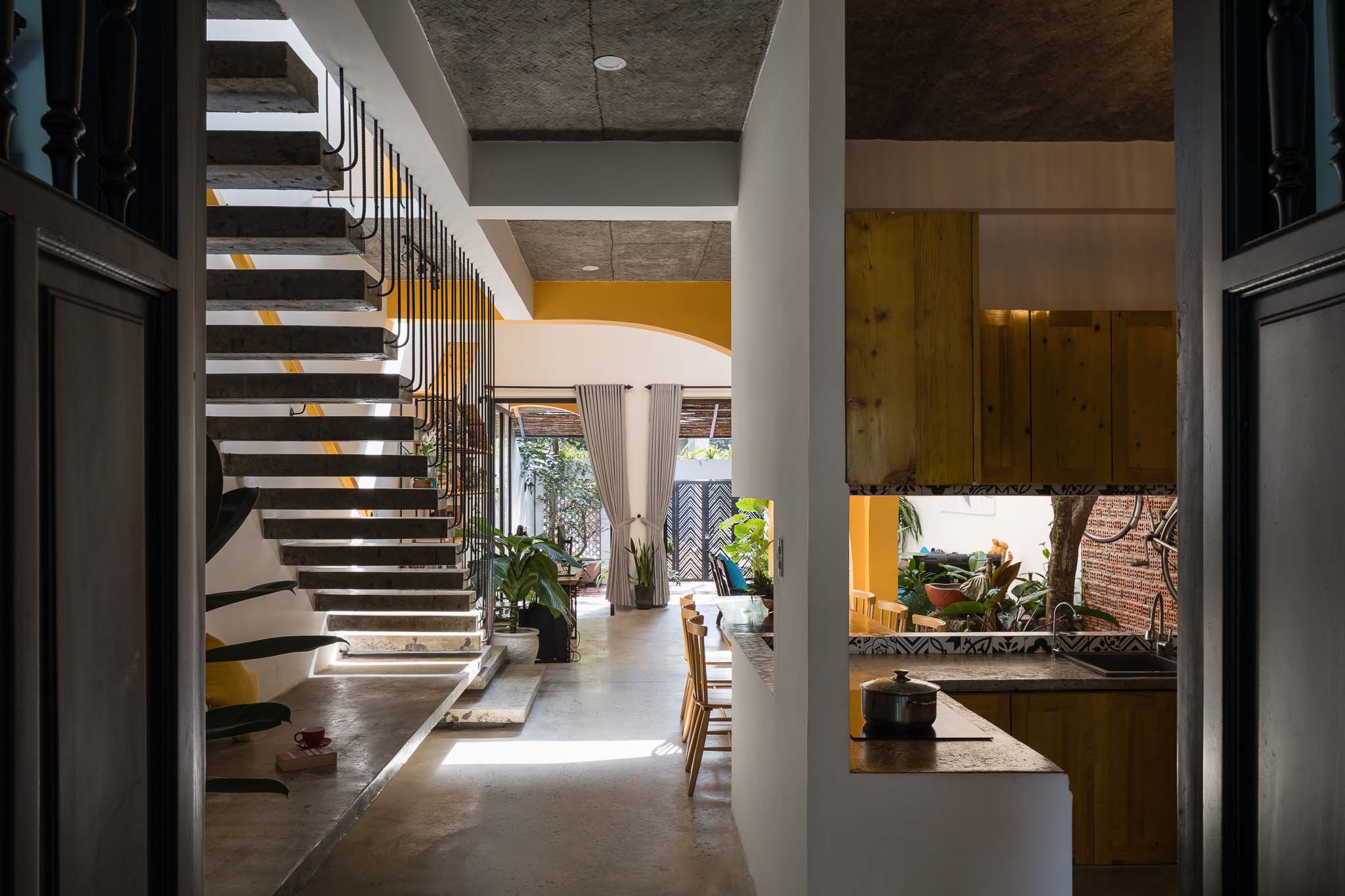 “KHE HOUSE” has the light penetrates the slots of building creating trails of light on walls and floors to make the space inside of the house more vivid