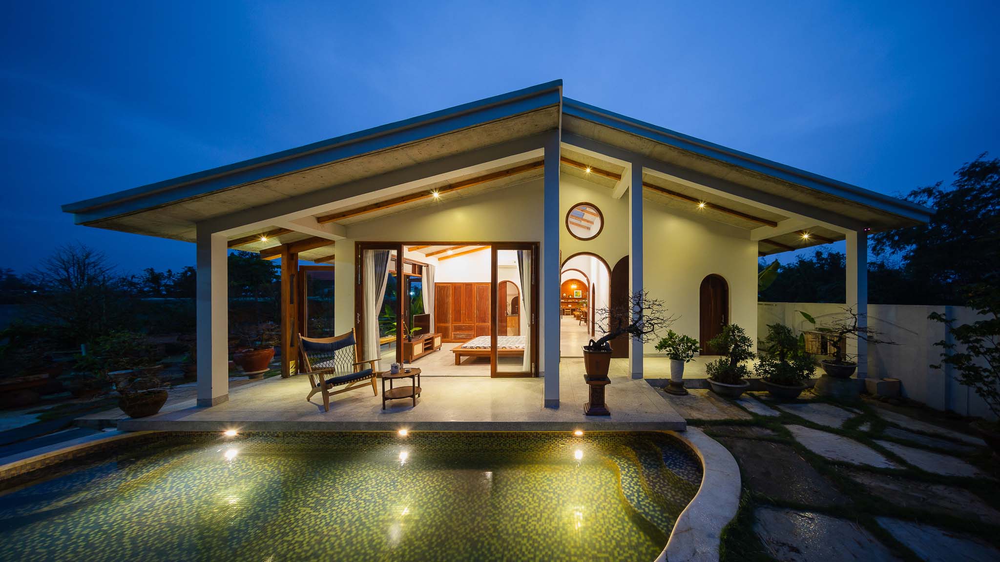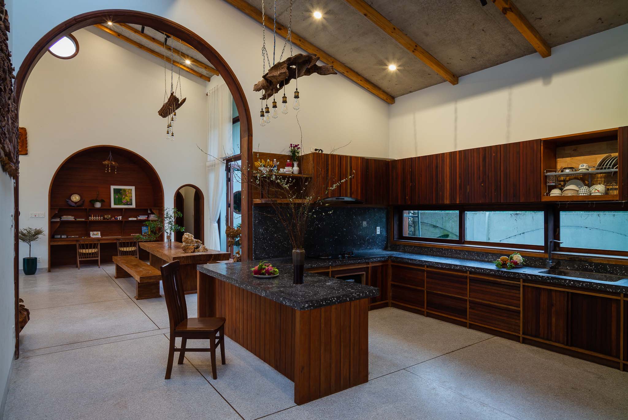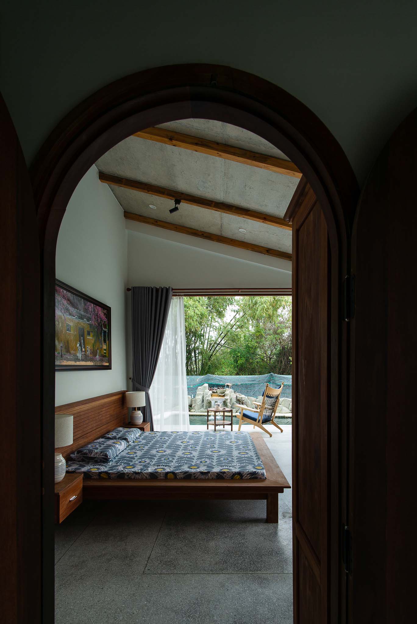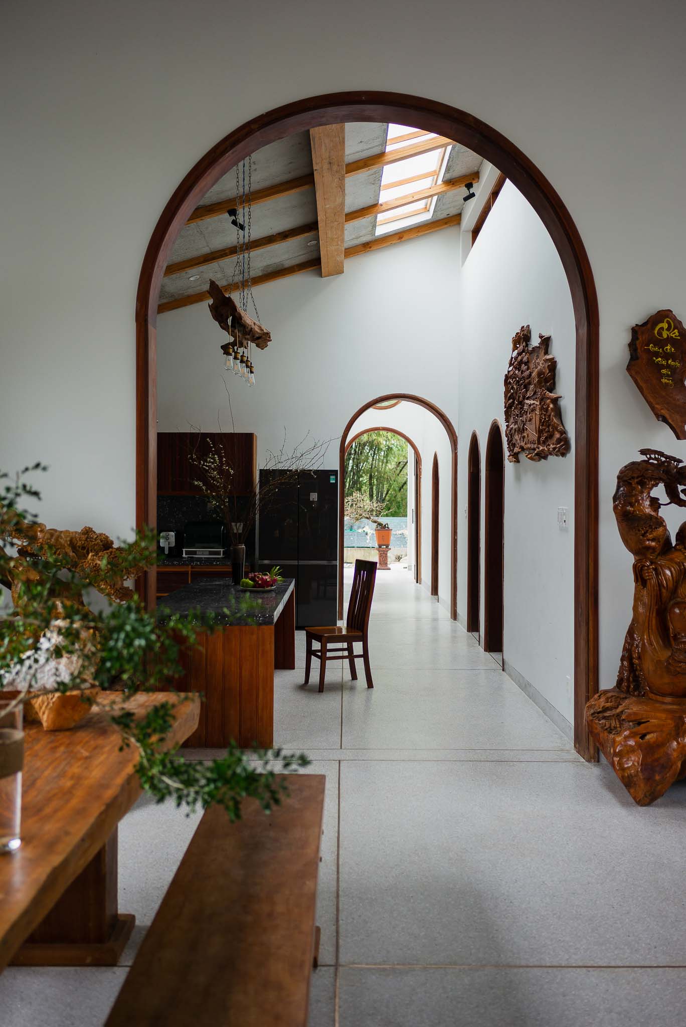 The architectural form of sloping roofs and terraces is reminiscent of rural houses. The “Nhà Nhúm” is designed to give owners peace of mind and maximum privacy.