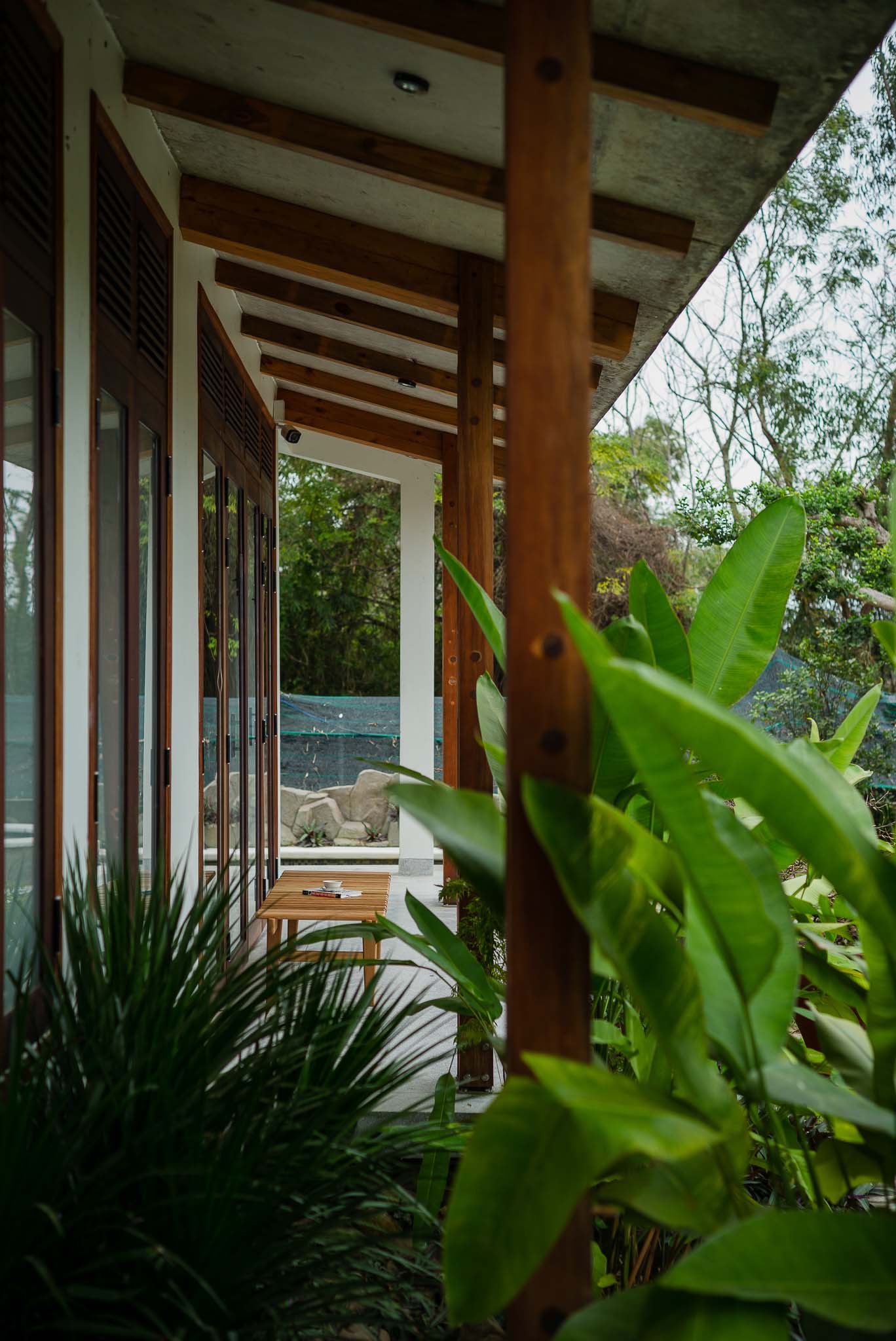 Mỗi khối phòng ngủ có một khoảng đệm hàng hiên có chức năng làm giảm được ánh sáng trực tiếp vào bên trong nhà, nơi hàng hiên cũng lại là góc thư giãn dành riêng cho mỗi thành viên trong gia đình.