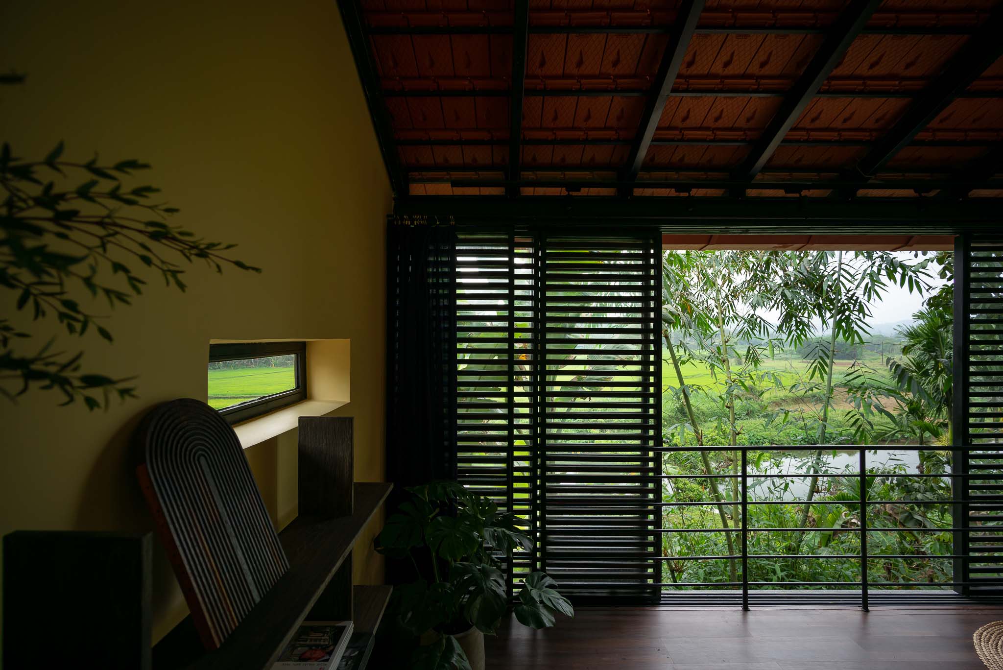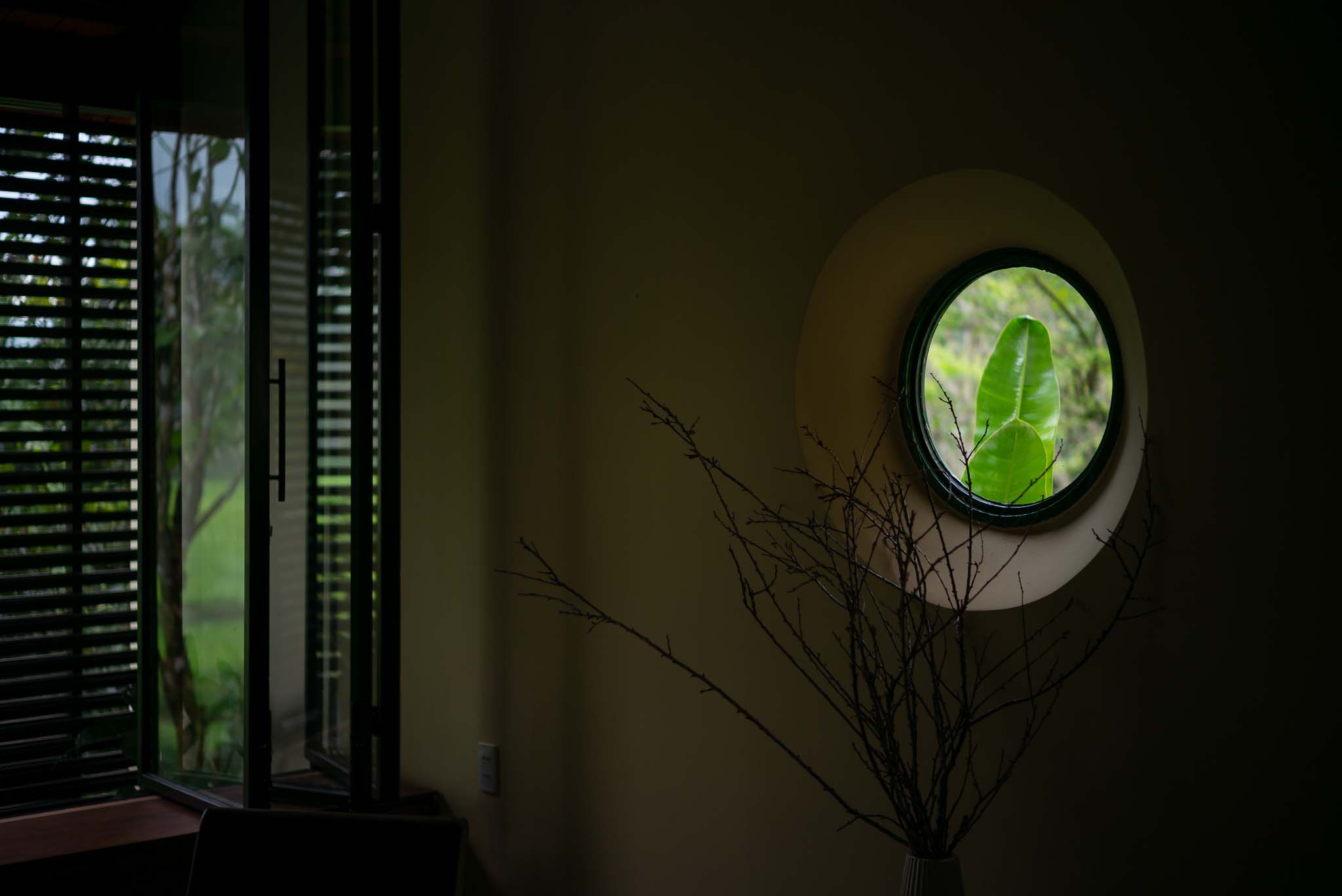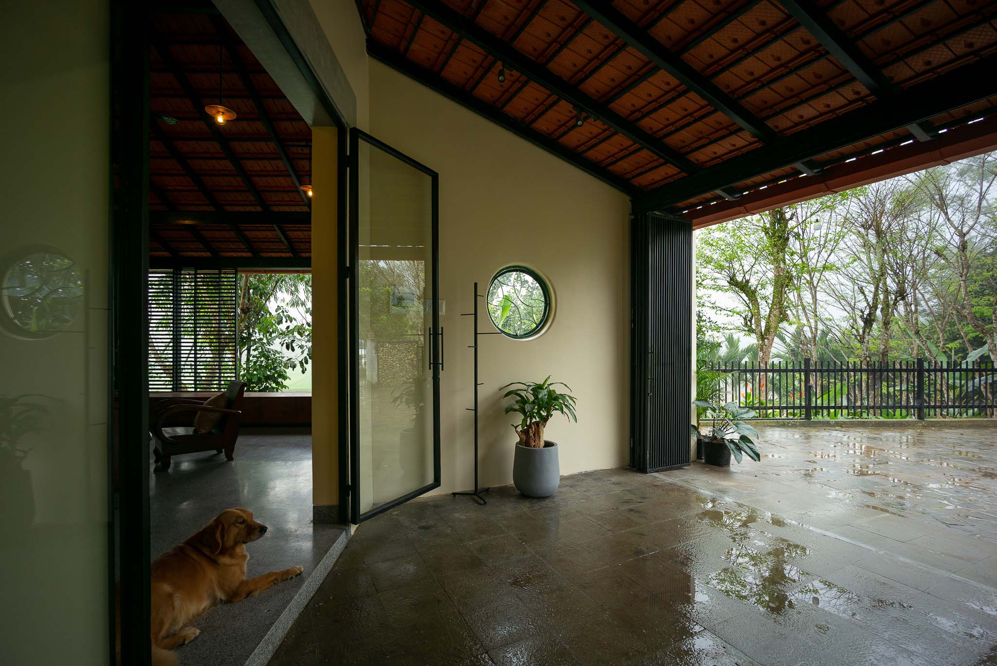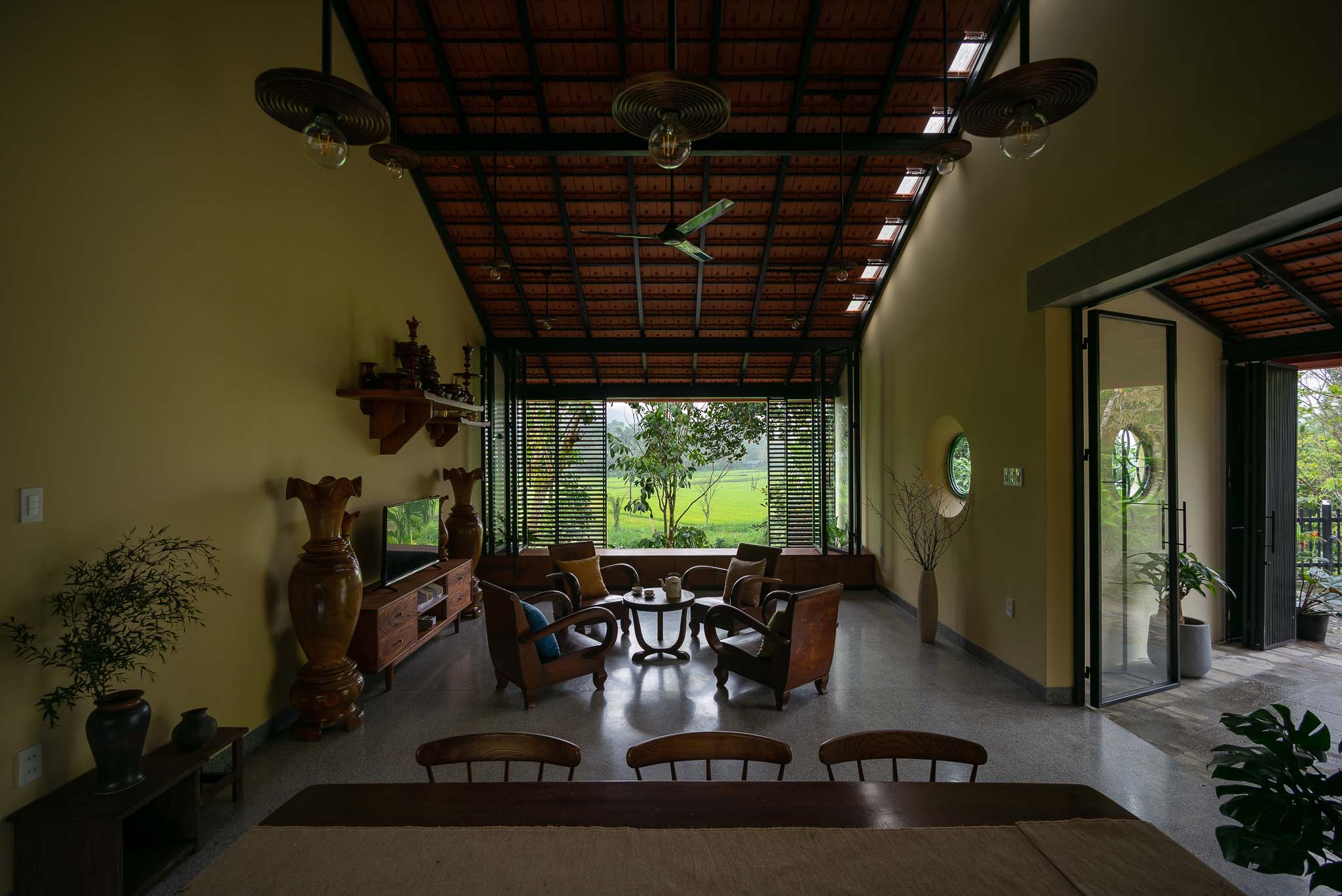 Main spaces approach directly to outdoor spaces through doorways and large-scale windows, which bring the invigorated green landscape and receive the natural light, along with the scenery looking out the green paddy field and lush forest. People in the house can contemplate the view and the beauty of nature. Furthermore, the space creates a sense of rest for the human mind with the sight of foggy mountains on cold days or the ripe golden grain when the harvest season comes.