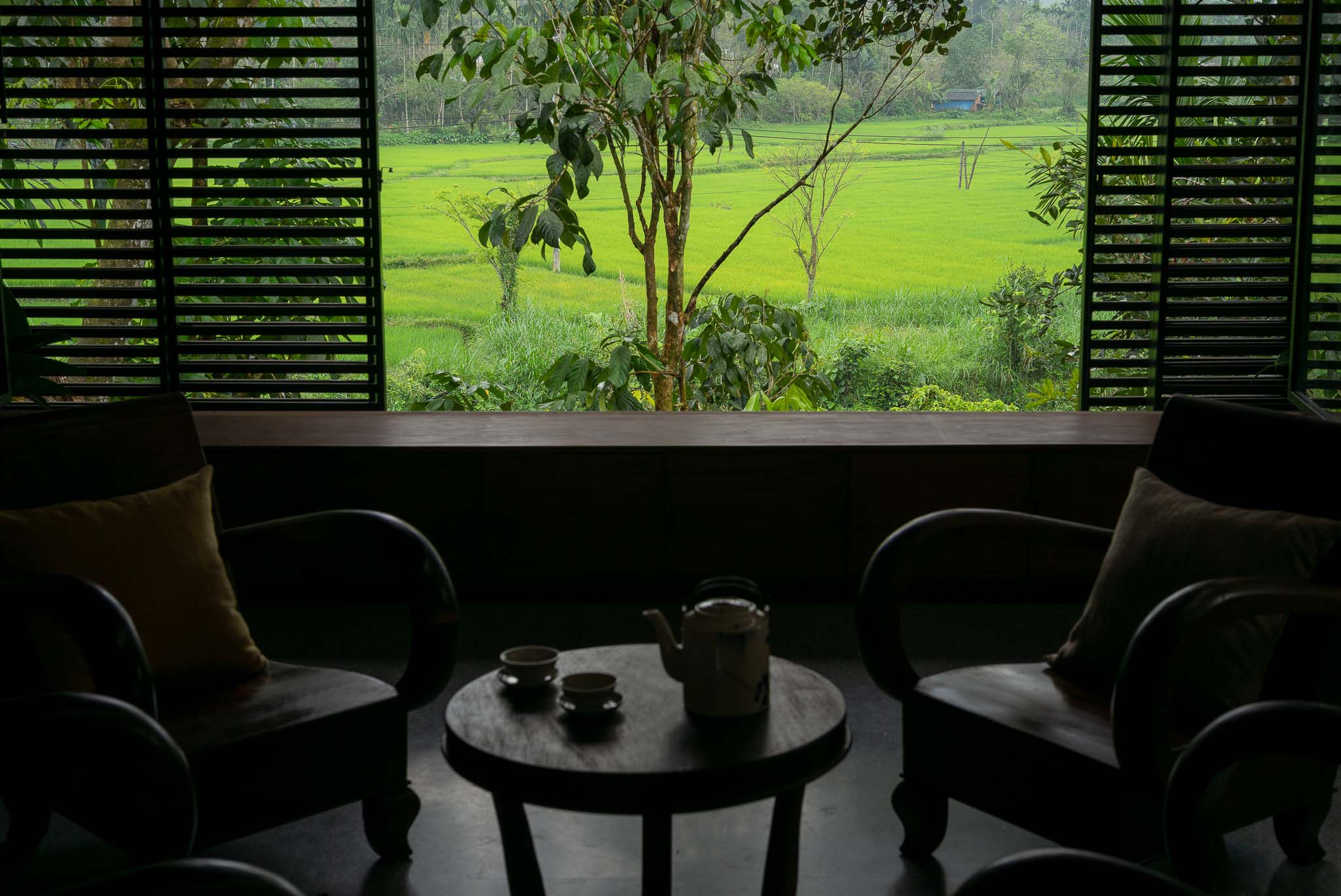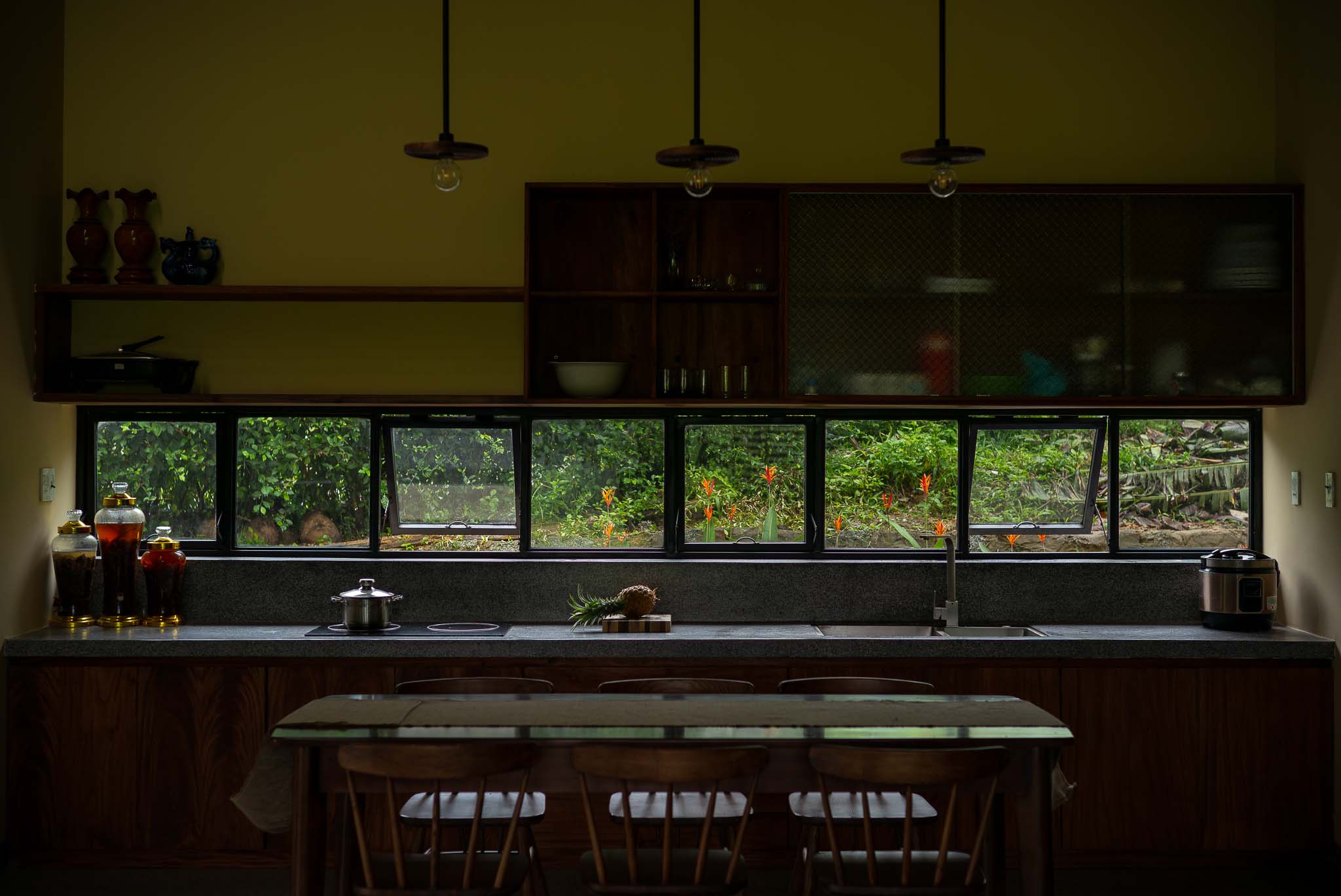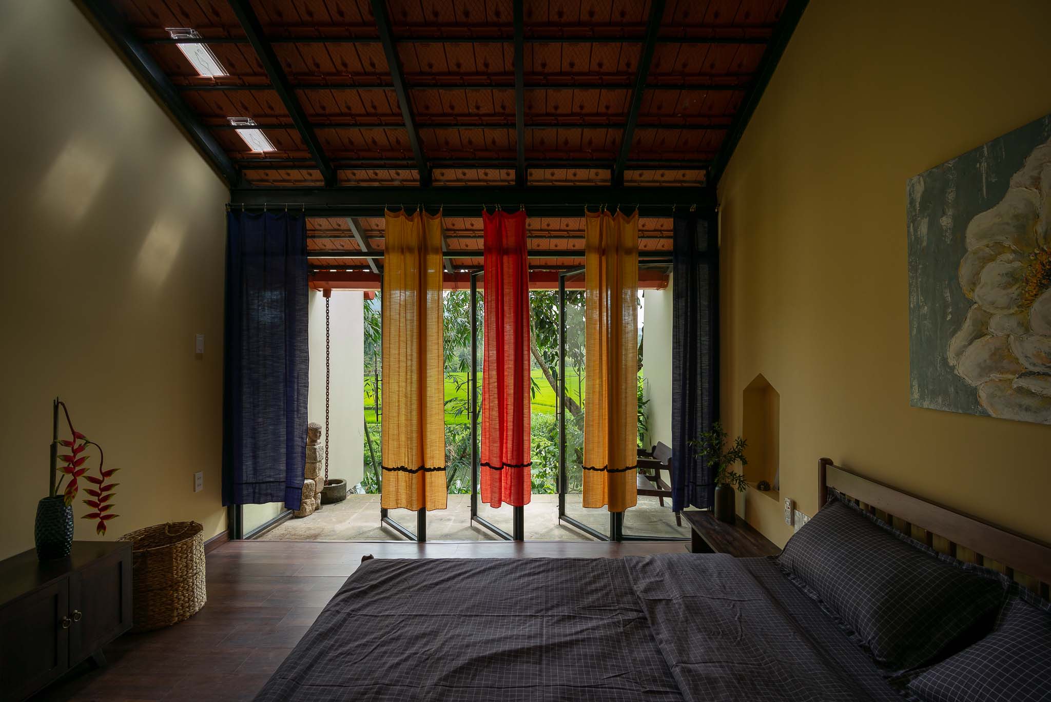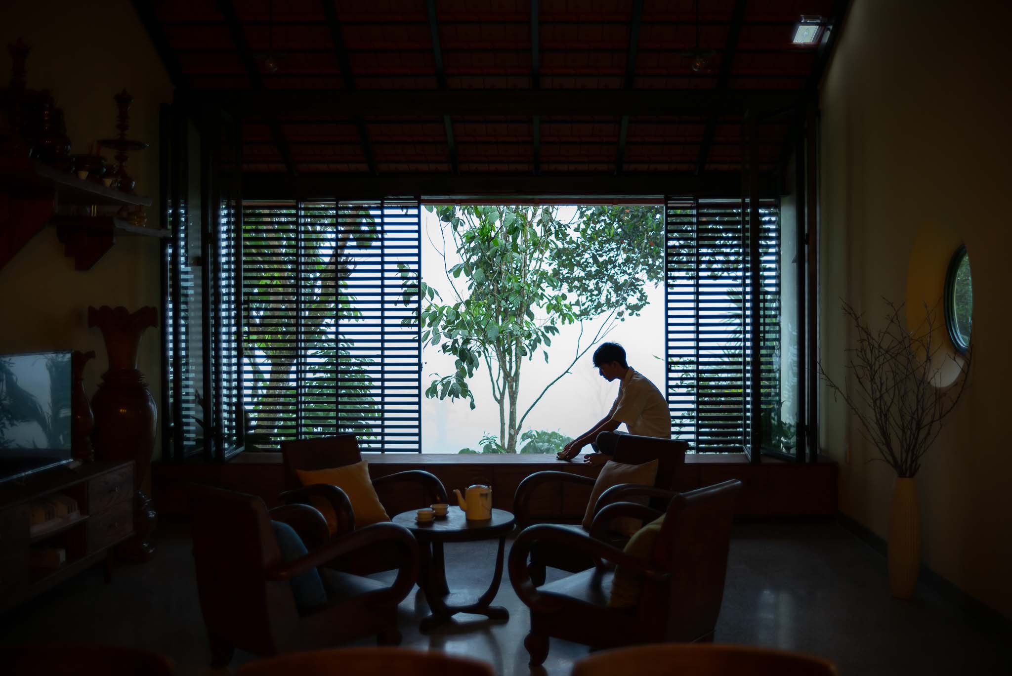 Main spaces approach directly to outdoor spaces through doorways and large-scale windows, which bring the invigorated green landscape and receive the natural light, along with the scenery looking out the green paddy field and lush forest. People in the house can contemplate the view and the beauty of nature. Furthermore, the space creates a sense of rest for the human mind with the sight of foggy mountains on cold days or the ripe golden grain when the harvest season comes.