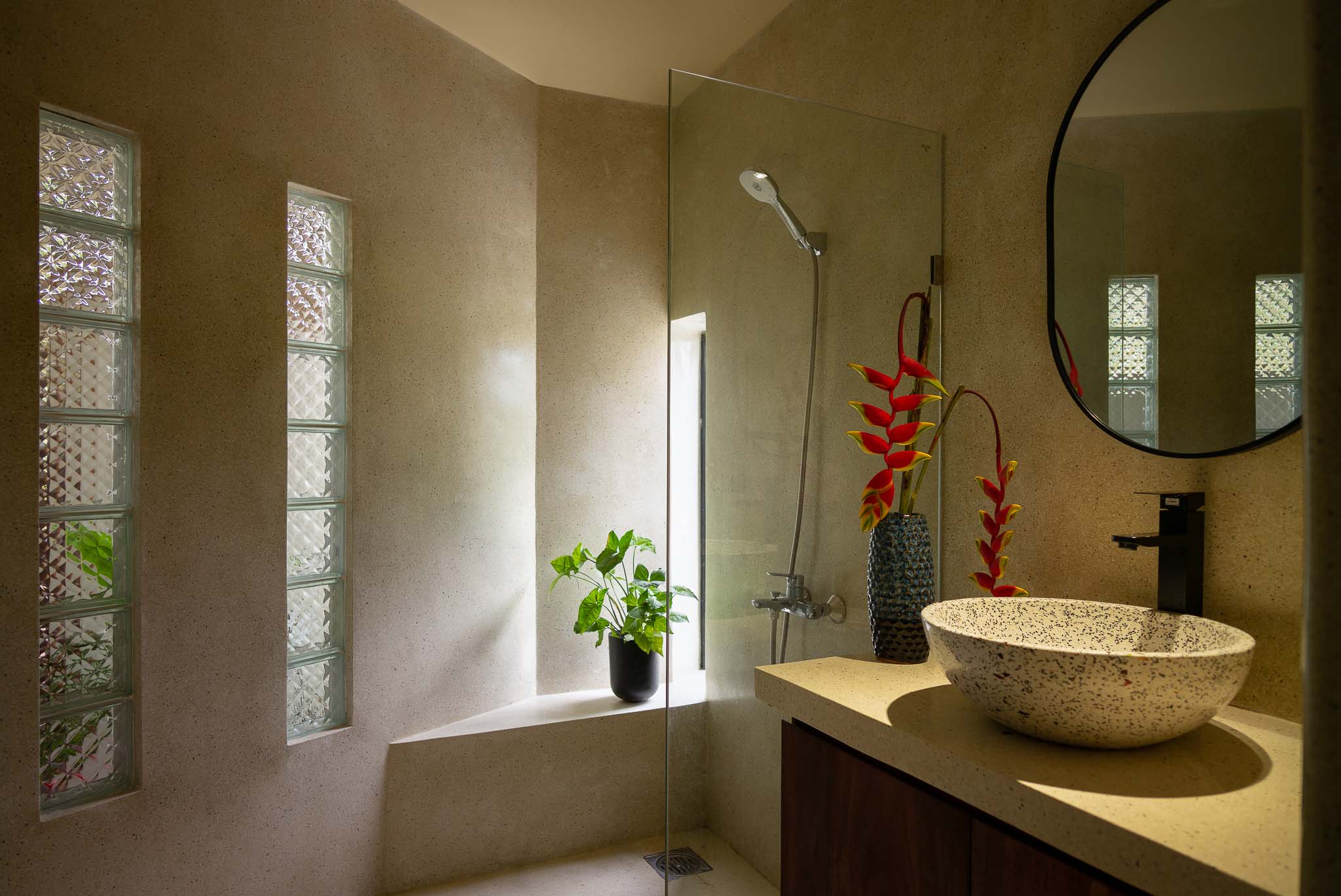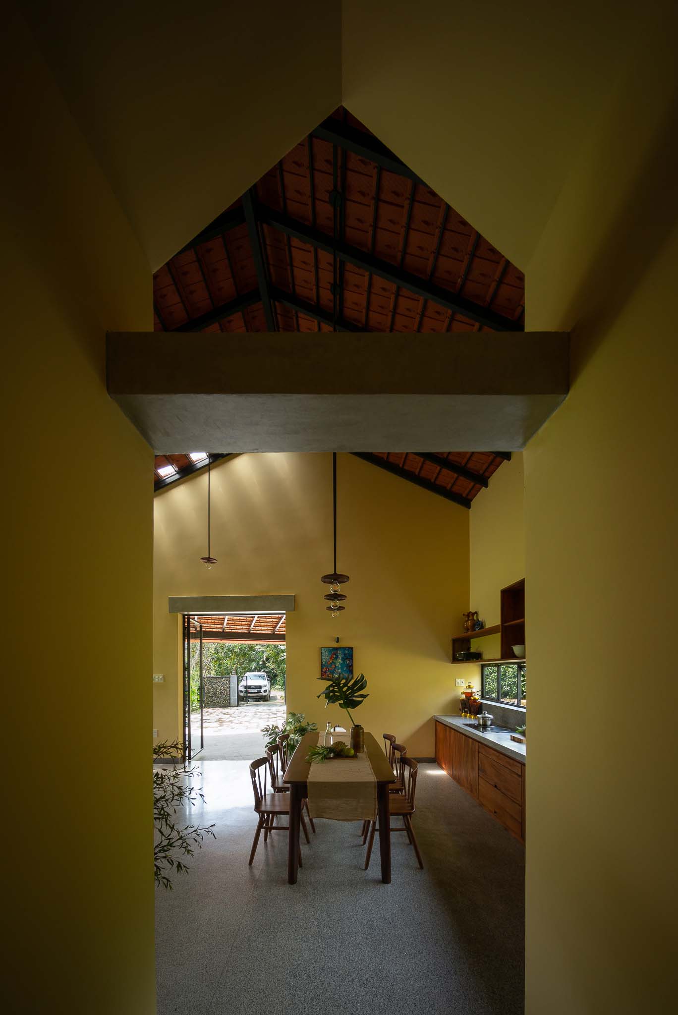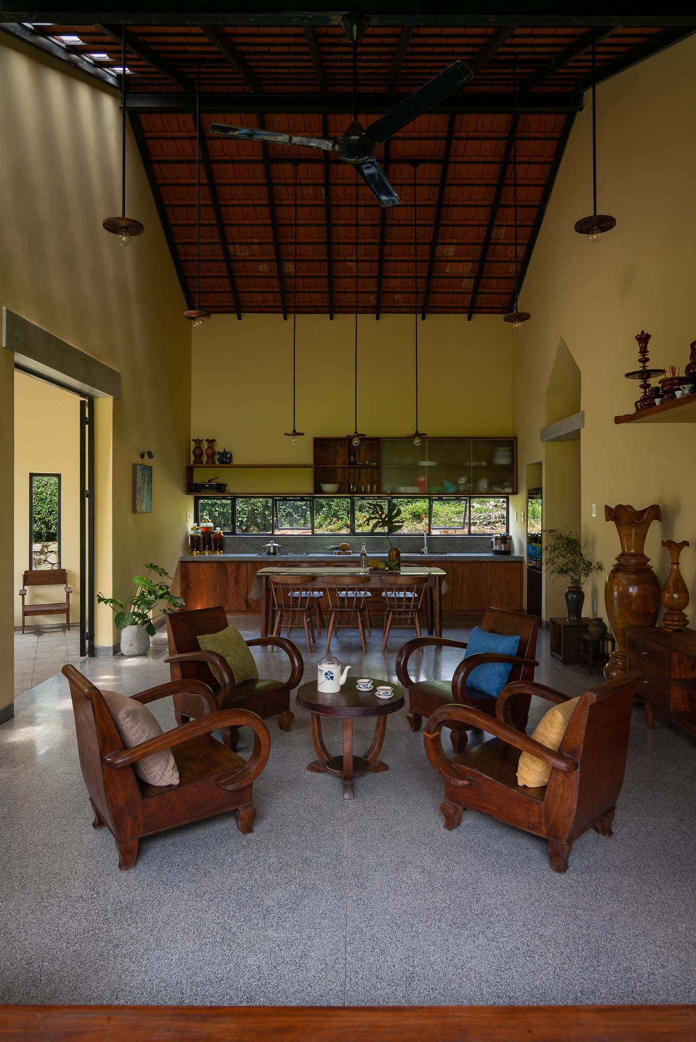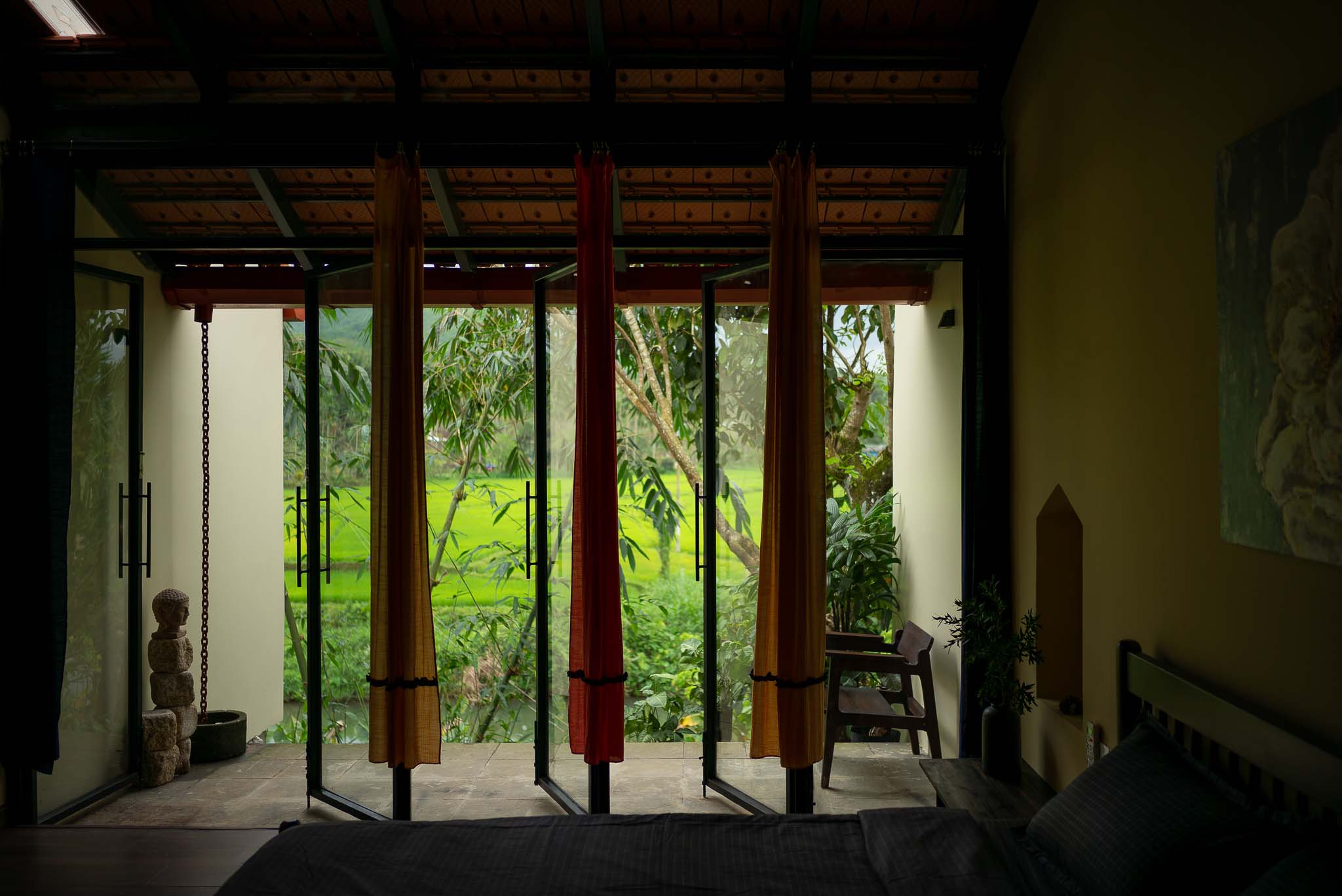 Main spaces approach directly to outdoor spaces through doorways and large-scale windows, which bring the invigorated green landscape and receive the natural light, along with the scenery looking out the green paddy field and lush forest. People in the house can contemplate the view and the beauty of nature. Furthermore, the space creates a sense of rest for the human mind with the sight of foggy mountains on cold days or the ripe golden grain when the harvest season comes.