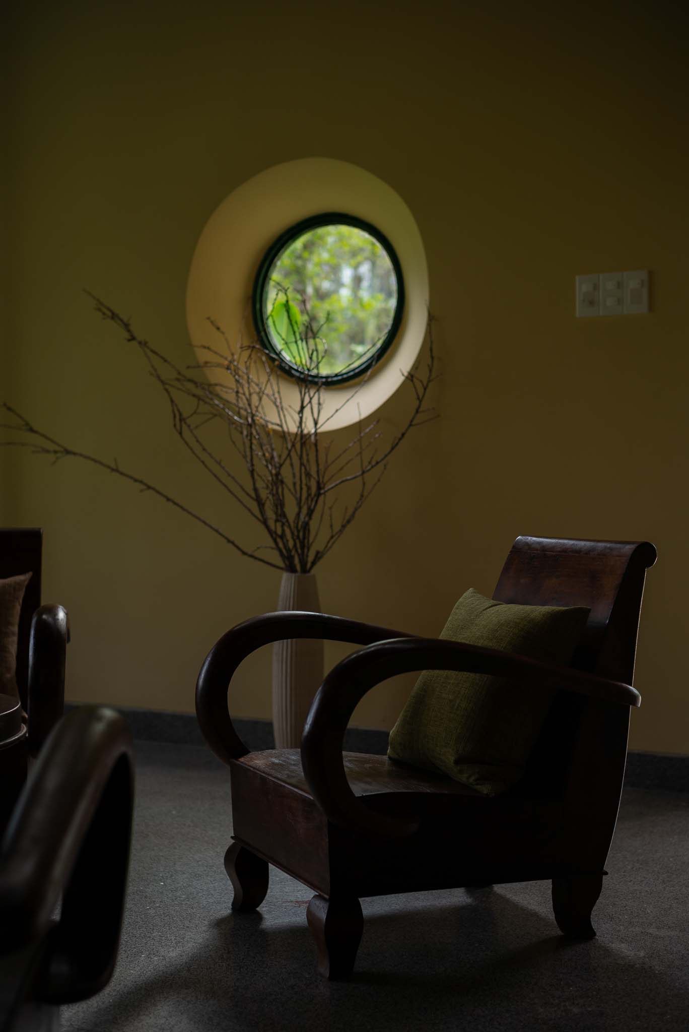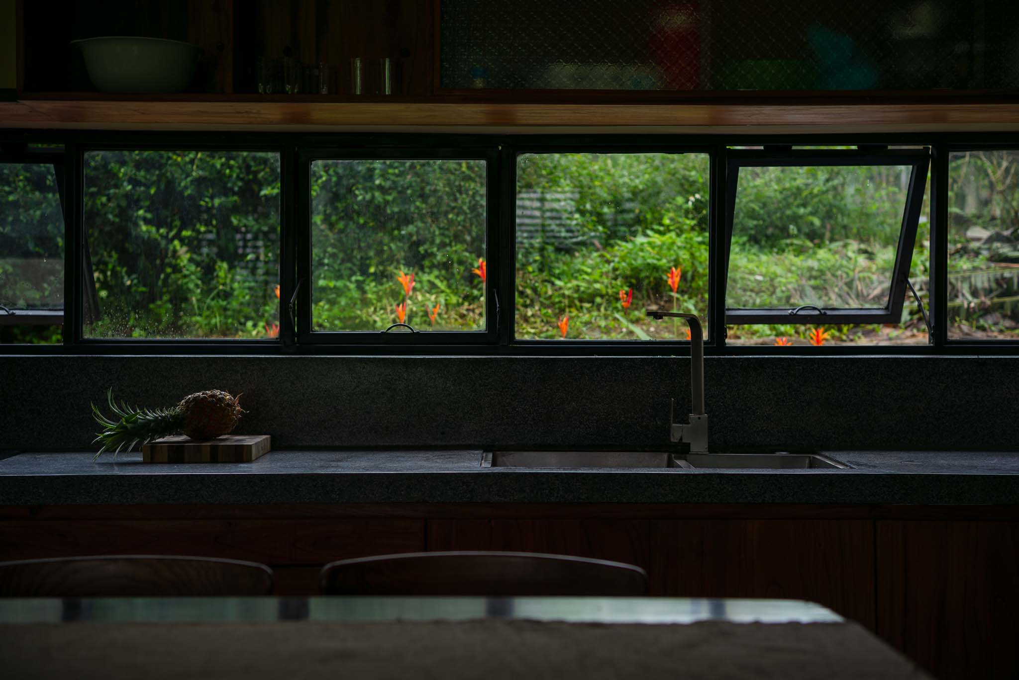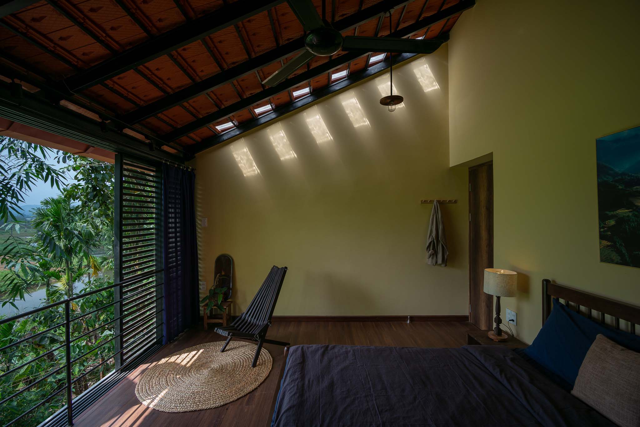 Các không gian chính được tiếp cận trực tiếp với không gian ngoài trời qua các ô cửa đi và cửa sổ lớn mang đến một không gian thoáng đãng và nhận được ánh sáng tự nhiên, nhìn ra cánh đồng xanh và núi rừng. Trong không gian này ta có thể ngồi bên khung cửa tận mắt trải nghiệm thiên nhiên: nắng, mưa, gió, sương mù, bầu trời. Tạo cảm giác thoải mái cho bản thân và đắm mình trong khung cảnh của những sườn núi đầy sương mù vào mùa đông hay những đồng lúa chín vàng khi đến mùa thu hoạch.