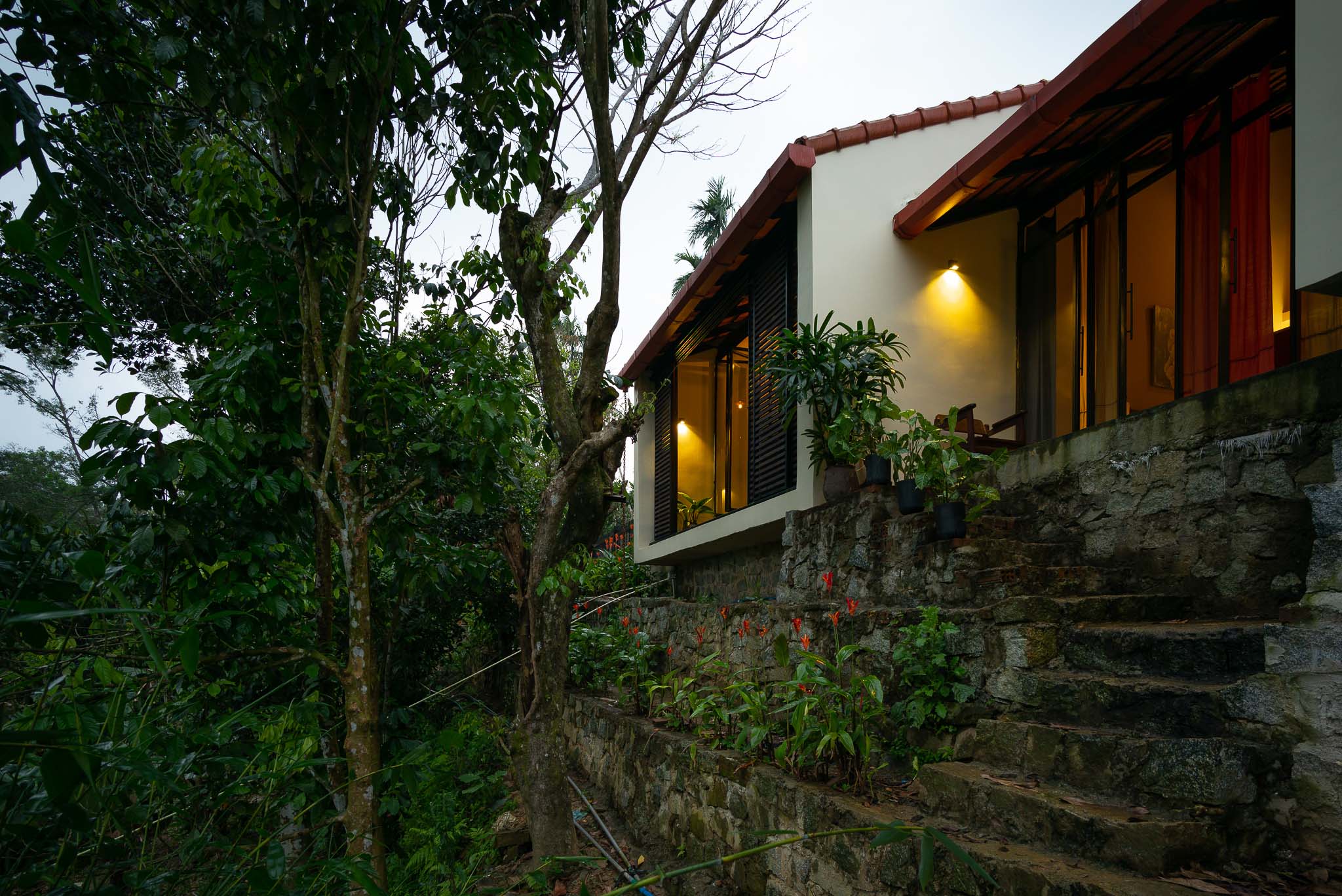 Tien Cam's house is situated on the slopes hill of a peaceful rural area, surrounded by mountains, overlooking orchards, flowing streams and fertile fields.